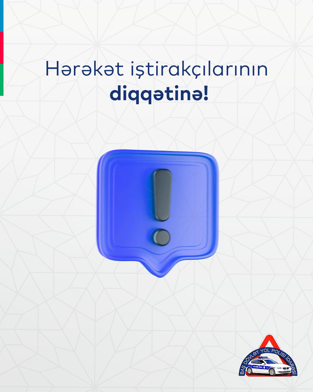“Qeyri-iş günlərində avtomobil yollarında hərəkət intensivliyinin artdığını nəzərə alaraq, xüsusilə səfərə çıxan sürücülər sürət həddini minimuma endirməli, ara məsafəsini normadan artıq saxlamalı, avtomobilin şüşəsilənlərinin, işıq cihazlarının saz vəziyyətdə olmasına, eləcə də nömrə nişanlarının təmizliyinə nəzarət etməlidirlər. Əlverişsiz hava şəraitinin piyadaların hərəkətində də bir sıra çətinliklər yaratdığını qeyd etməklə yanaşı, təhlükəsizlik baxımından onları da məsuliyyətli olmağa çağırır, tələskənliyə yol verməməyi, səki ilə hərəkət etməyi, avtomobil yollarına çıxmamağı tövsiyə edirik”, – müraciətdə qeyd olunub.