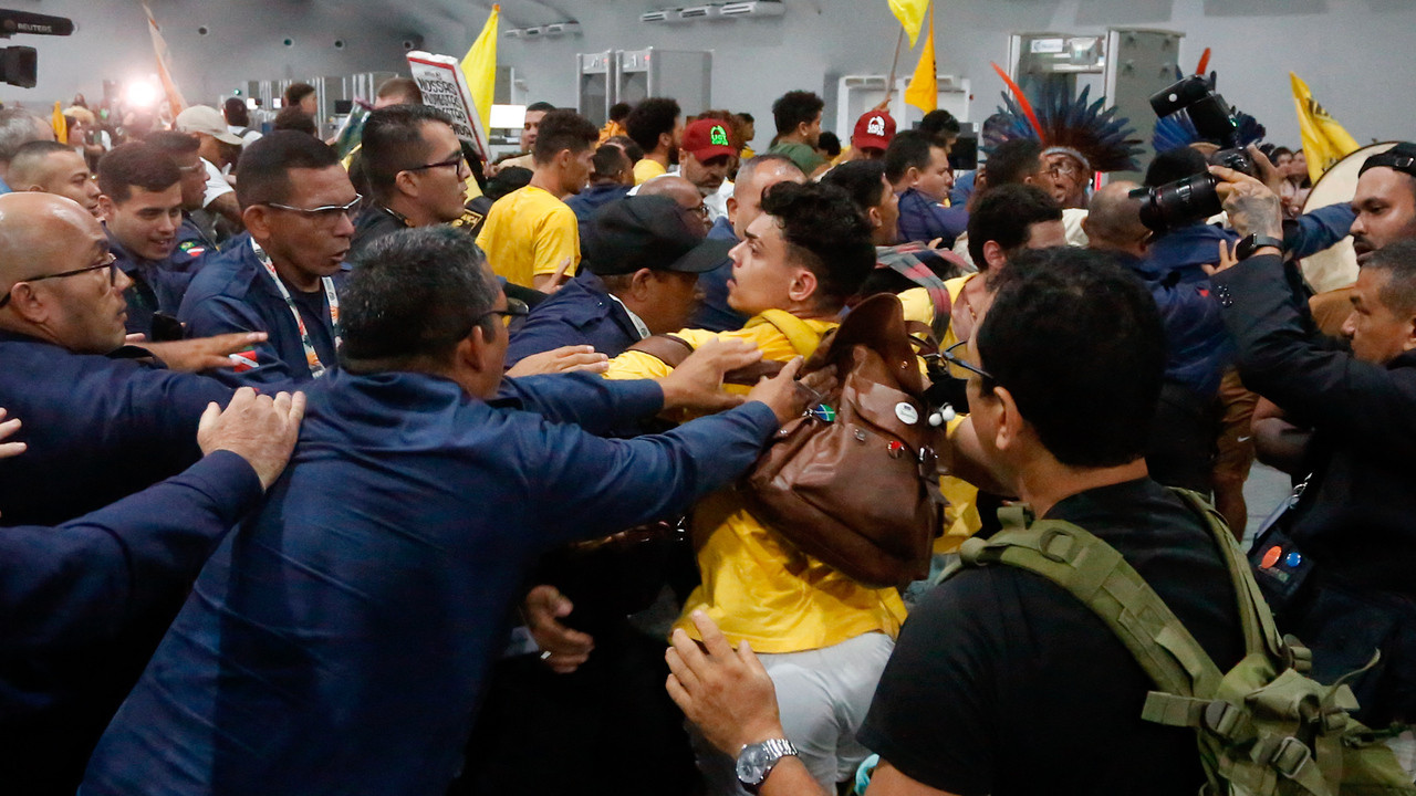 Fəallar Amazon yağış meşələrində neft qazma fəaliyyətlərini və yerli icmaların torpaqlarının pozulmasını pisləyərək sammit zonasında girişə çalışıblar. Təhlükəsizlik qüvvələridir girişin qarşısını almağa çalışaraq bir neçə nümayişçini çıxarıblar, bir işçi də yaralanıb.