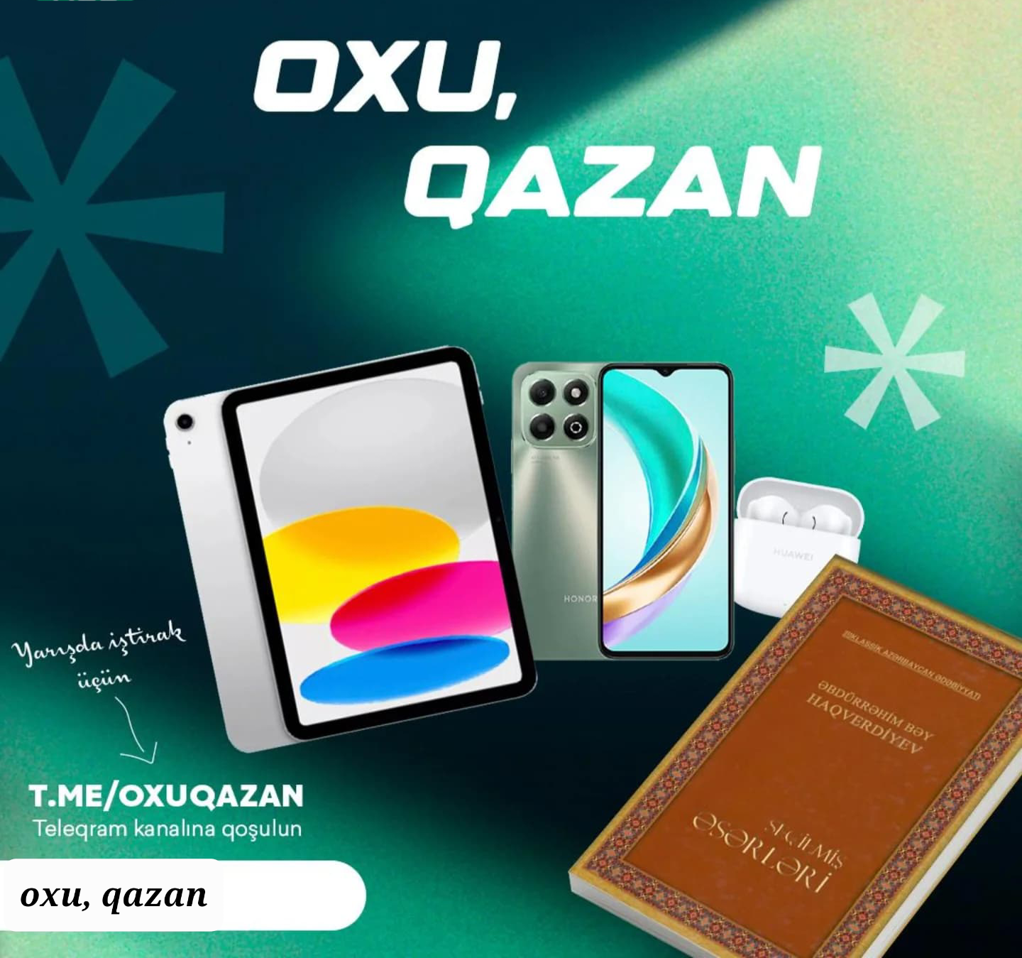 ⏰ İyulun 19-da, saat 21:00-da “Teleqram” kanalında bütün iştirakçılara eyni anda kitabdan test sualları yayımlanacaq. Hər test sualına 20 saniyə ərzində cavab vermək imkanınız olacaq və sonra növbəti test sualı yayımlanacaq.