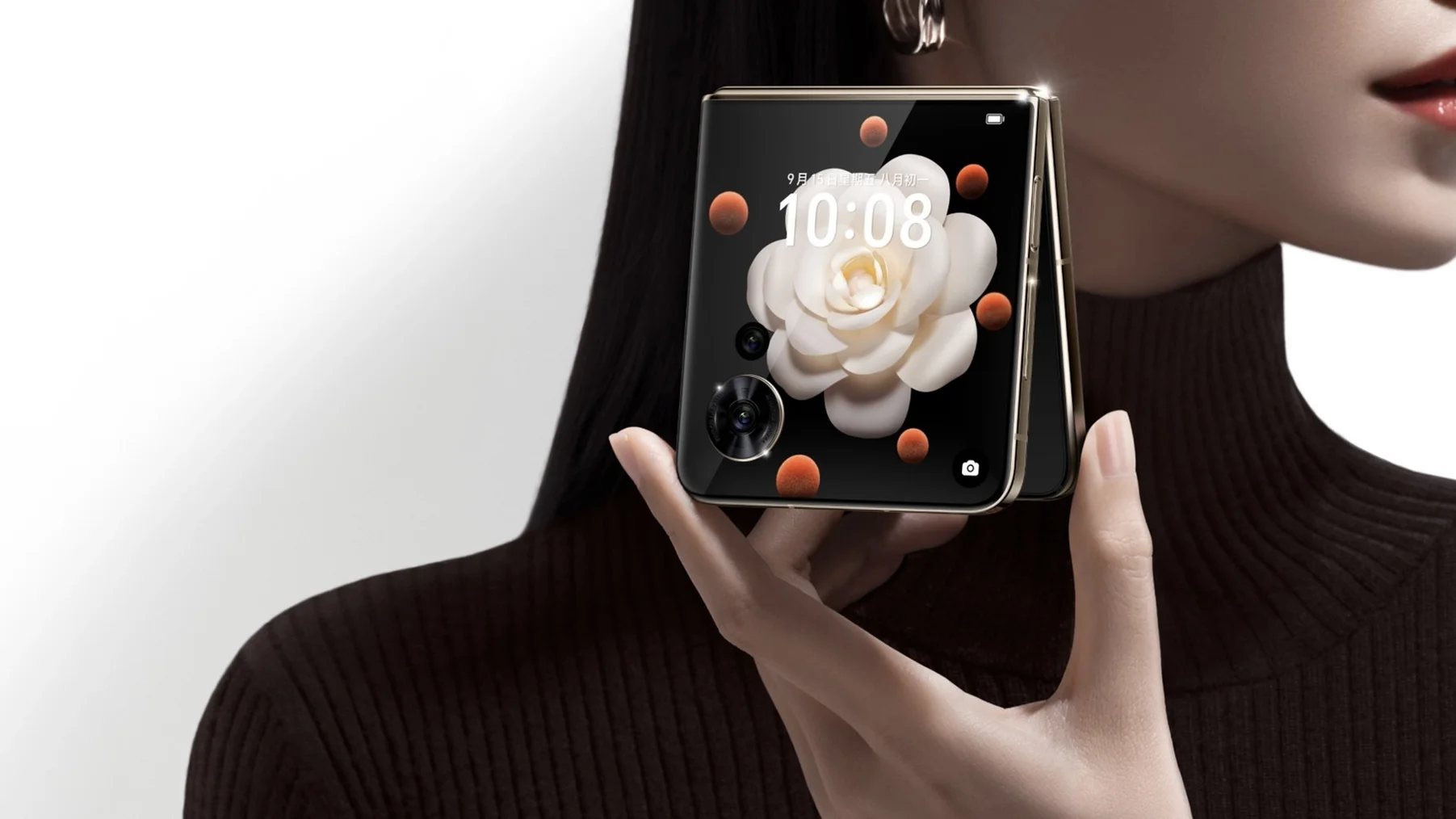 İkinci displeydə smartfonu moda aksesuarına çevirəcək vidjetlər və divar kağızları göstəriləcək. Honor-un məlumatına görə, Magic V Flip sahibinin istənilən şəklini tamamlaya biləcək. Məlumdur ki, 4 düymlük OLED ekran smartfonun ön hissəsinin 85%-ni tutur. Bu cür çərçivəsizliyə nail olmaq üçün flaşı qapaqların aşağı yarısına köçürməli və üstündə iki kamera qoymalı olduq: əsas və geniş bucaq.