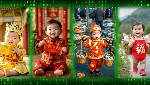 Süni intellektlə yaradılan nəvələr Ay Yeni ili qeyd etmələri zamanı məşhurlaşıb. Ailə üzvləri evə qayıdanda nənələrinin şənlikdə qırmızı kostyum geyinmiş kök körpələrinə sevinclə baxdıqlarını görüblər. Bəzi videolarda “AI-nin nəvələri” əllərində qızıl külçələr gəzdirir və hətta donuz əti qızardırlar, bundan sonra onu evlərinə nənələrinin yanına aparırlar. Başqa bir videoda uşaq müstəqil olaraq tarlada badımcan toplayır, sonra onları yuyur, kəsir və üç yeməkdən ibarət şam yeməyi hazırlayır.