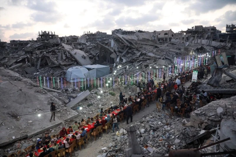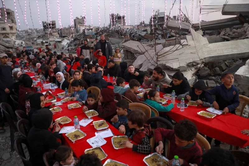 İsrailin uzun illərdir blokada altında saxladığı və 2023-cü ilin oktyabrından etibarən hücumlarını davam etdirdiyi Qəzza zolağında Ramazan ayında dağıntılar arasında iftar proqramı təşkil olunub.