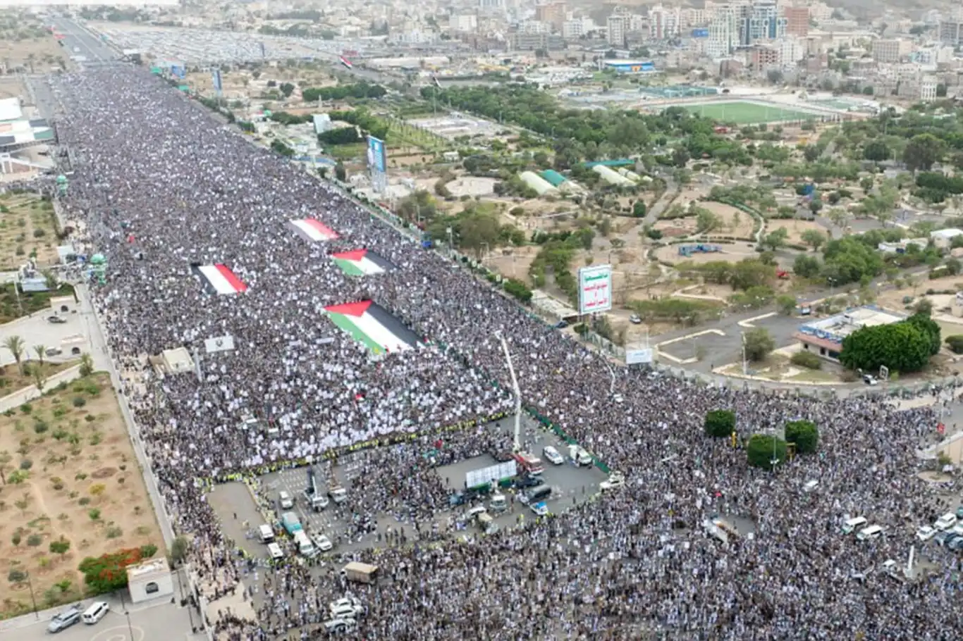 Yəmənlilər Sana və paytaxtının meydanlarına axın edən böyük izdihamın sionistlərin təkəbbürünə qarşı çıxdıqlarını və Amerika üzərində qələbə elan etdiklərini, Fələstinə və Qəzzə müqavimətinə davamlı dəstək verdiklərini təkrarlayıblar.